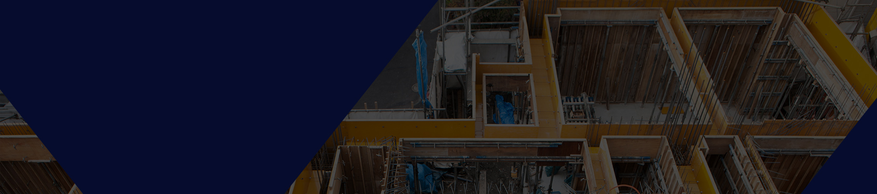 まず、ベースとなる骨組みを鉄筋屋さんが組み立て、その周りをベニヤ板で囲いコンクリートを流す為の枠を作成します。それが型枠というお仕事です。壁の建て込みを行ったら鉄パイプでコンクリートを流されても負けないように型枠の補強をします。